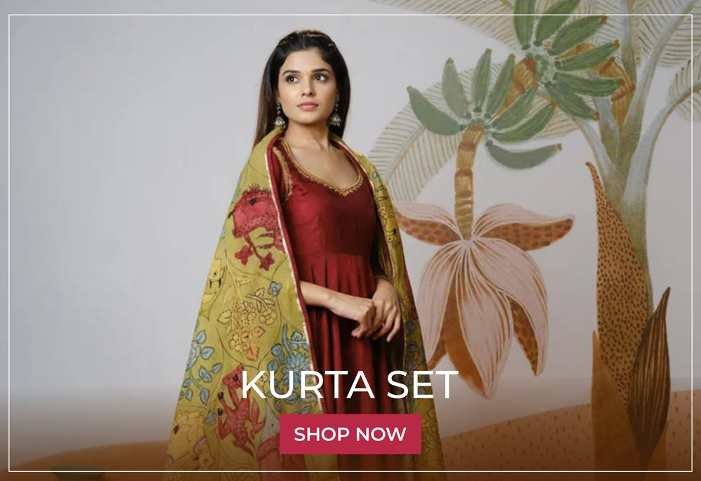 Kalamkari Cotton Kurta Set Floral Design with Coordinated Dupatta